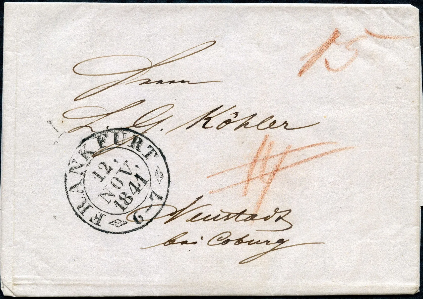 ich habe hier einen Porto-Brief aus Rotterdam vom 2.5.1862 an die Buchhandlung K.F. Köhler in Leipzig. Innen ist ungewöhnlicherweise ein Zettel eingeklebt, der auf eine beiliegende Abrechnung hinweist. Da der Zettel teilweise vorgedruckt ist, scheint eine intensive Geschäftsbeziehung bestanden zu haben.