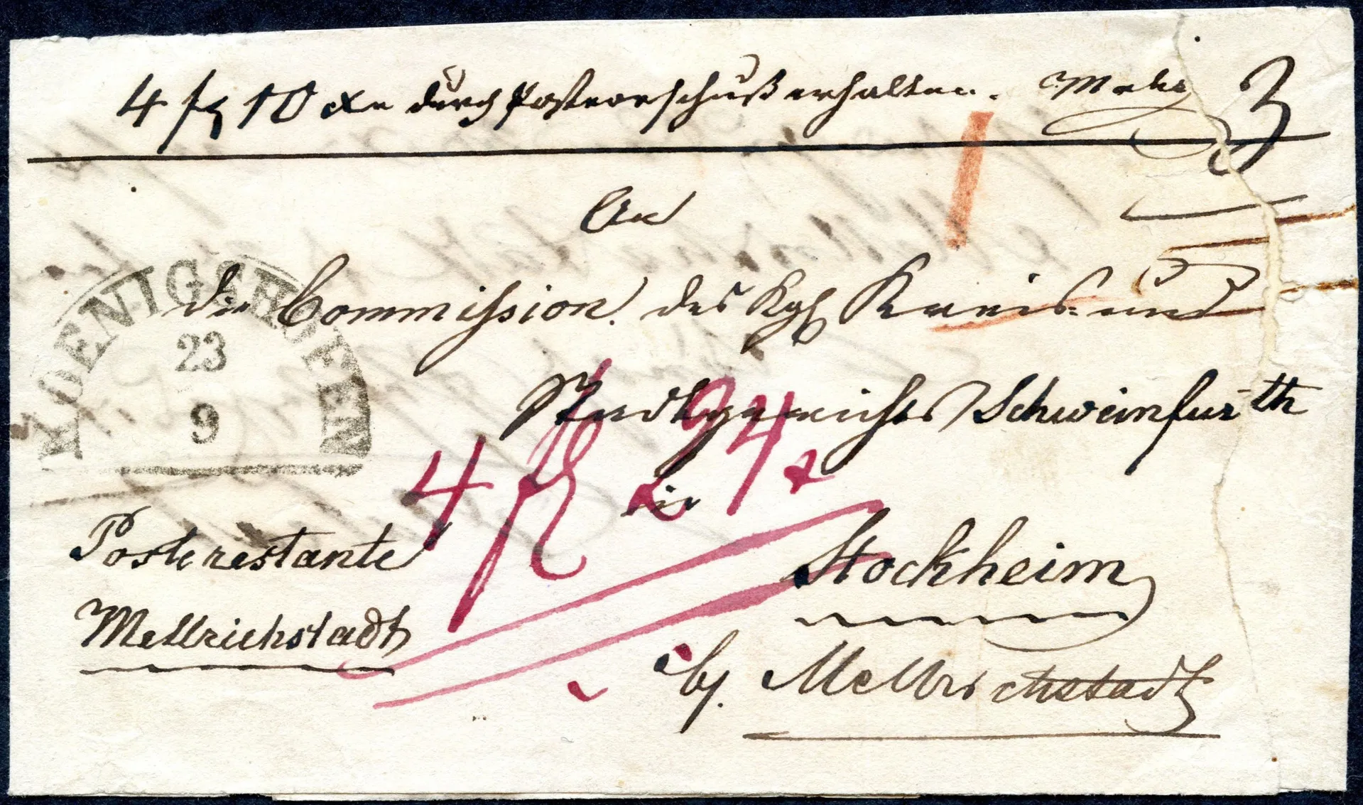 Auch im DÖPV war der Brief im 3. Gewicht, was 9 Sgr bzw Ngr ausmachte. Köhler in Leipzig durfte daher insgesamt 14 Ngr bezahlen, also fast ½ Taler.
